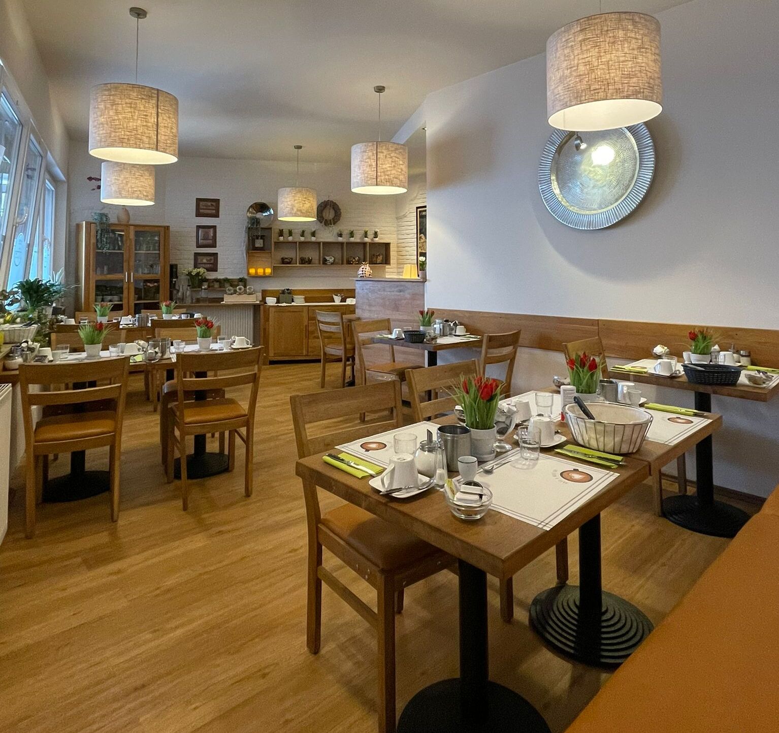 In unserem Frühstücksraum können Sie in entspannter Atmosphäre ein leckeres Frühstück zu sich nehmen.
